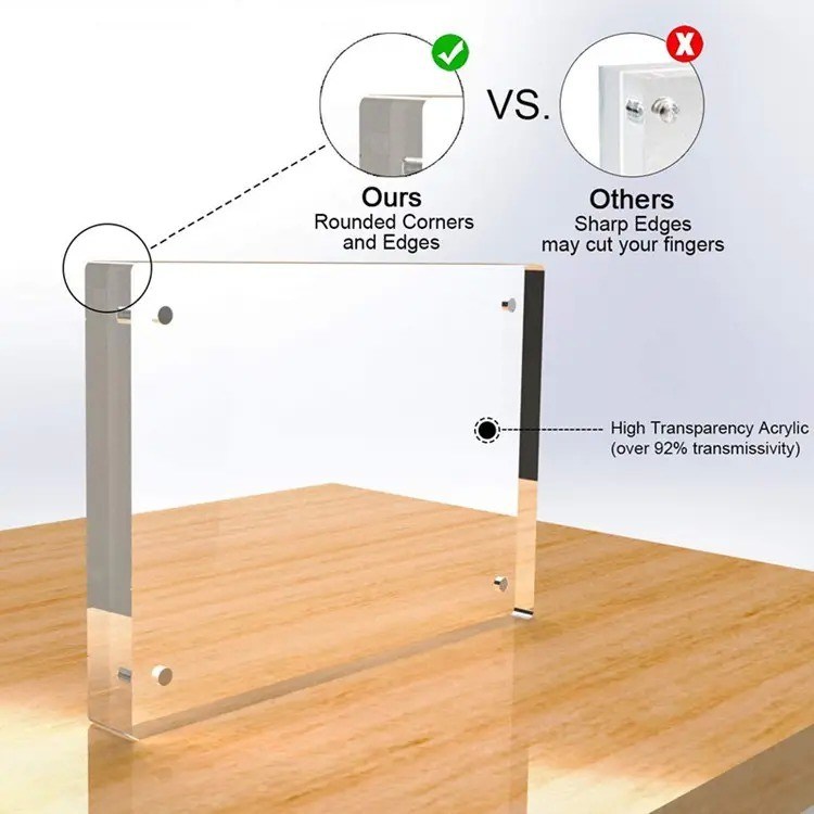 Display de escritorio de acrílico doble a prueba de agua sin uñas Marco fotográfico magnético autoportante 7
