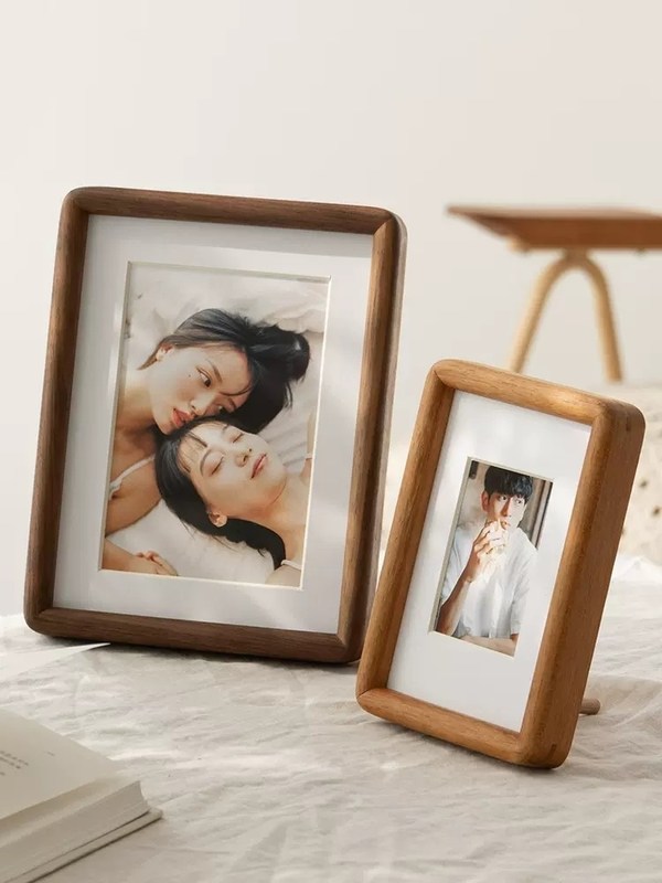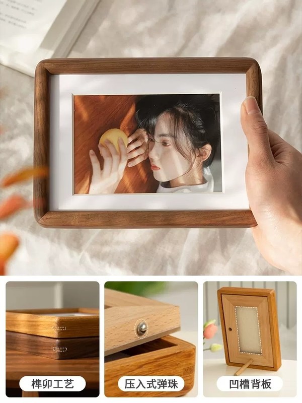 Estilo de simplicidad Marcos de fotos pequeños Marcos de fotos de madera natural Mesa con soporte 0