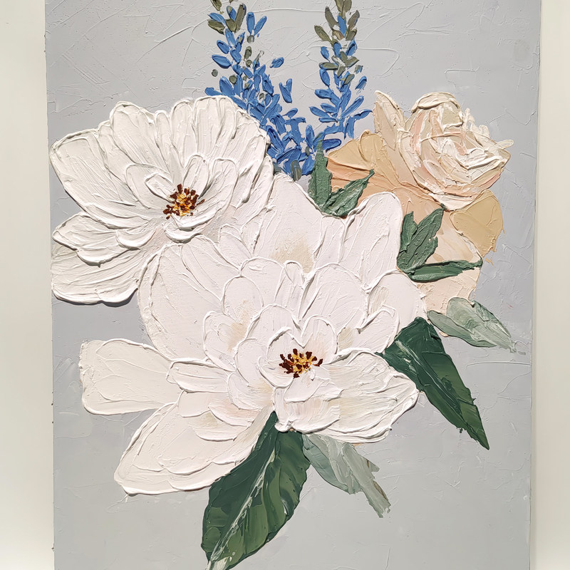 Pintura a mano de tela texturizada moderna pintura al óleo de flor blanca para sala de estar decoración del hogar 100% hecha a mano y sin marco 12