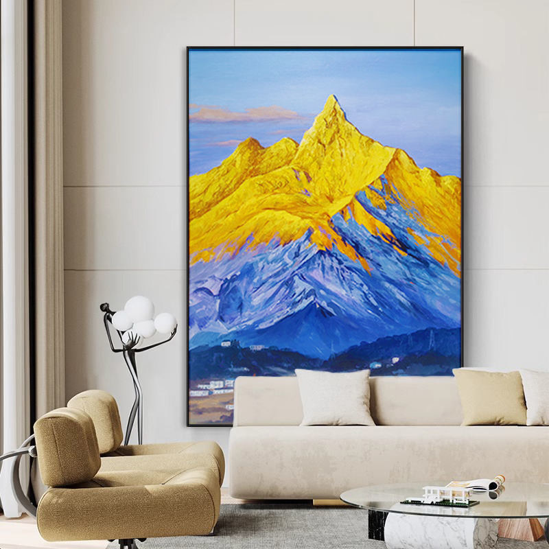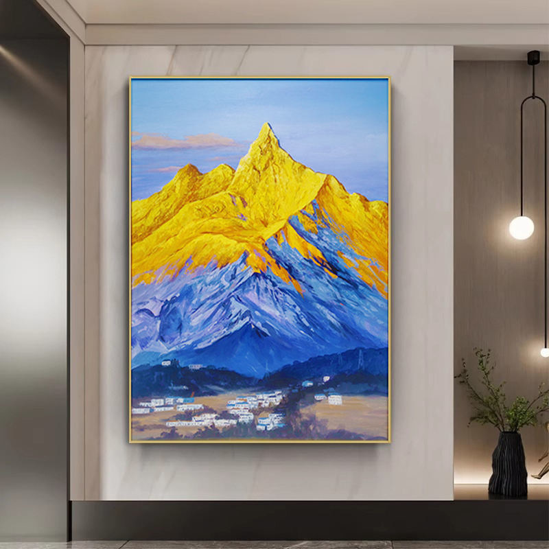 Pintura a mano personalizada de montaña dorada moderna abstracta de textura gruesa lienzo de relieve 3d con varios métodos de impresión 2