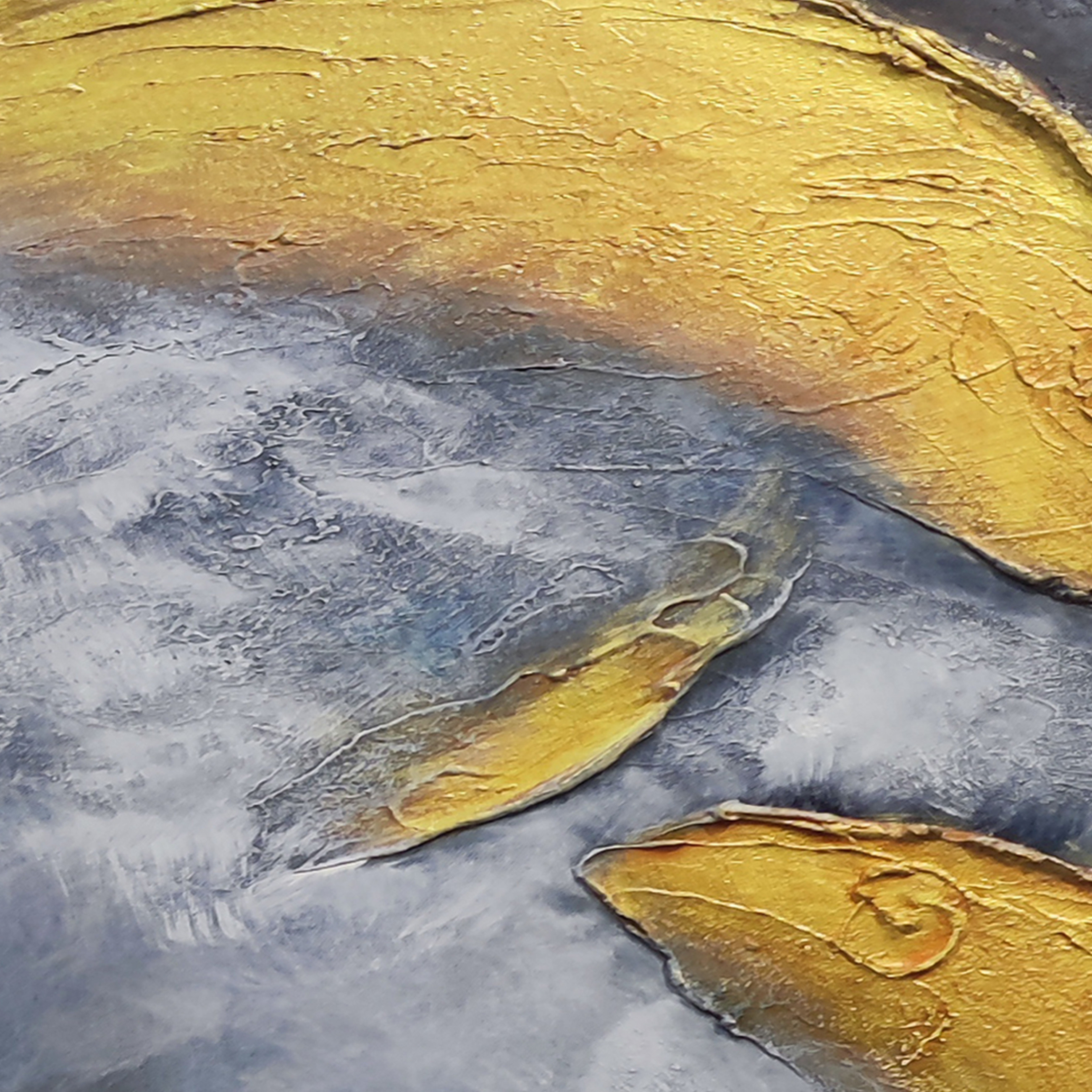 Medio de pintura al óleo y 6 métodos de impresión de color utilizados para el pez dorado pintado a mano Arte de papel de oro Arte de sala de estar 2