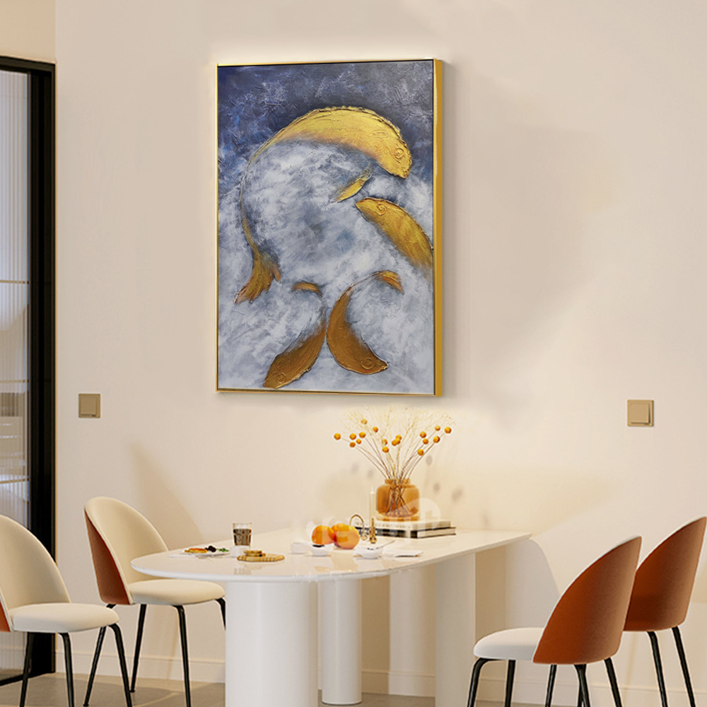Medio de pintura al óleo y 6 métodos de impresión de color utilizados para el pez dorado pintado a mano Arte de papel de oro Arte de sala de estar 3