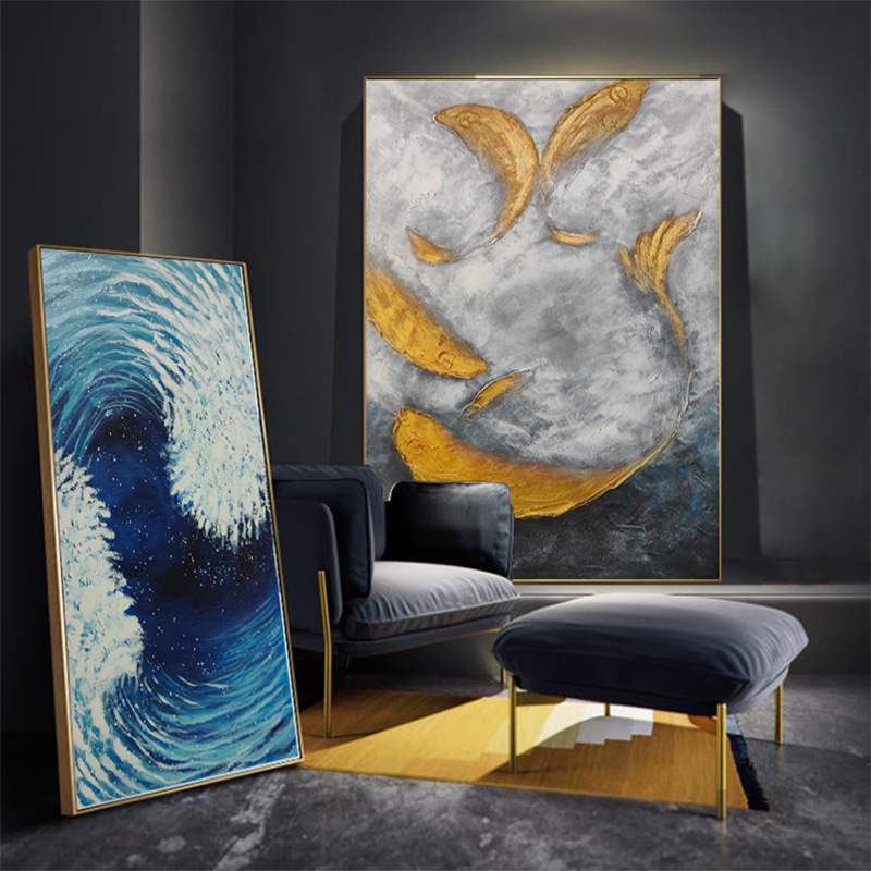 Arte mural de decoración de hogares modernos de lujo con pintura a mano en 3D de animales abstractos en lienzo para la decoración del salón.